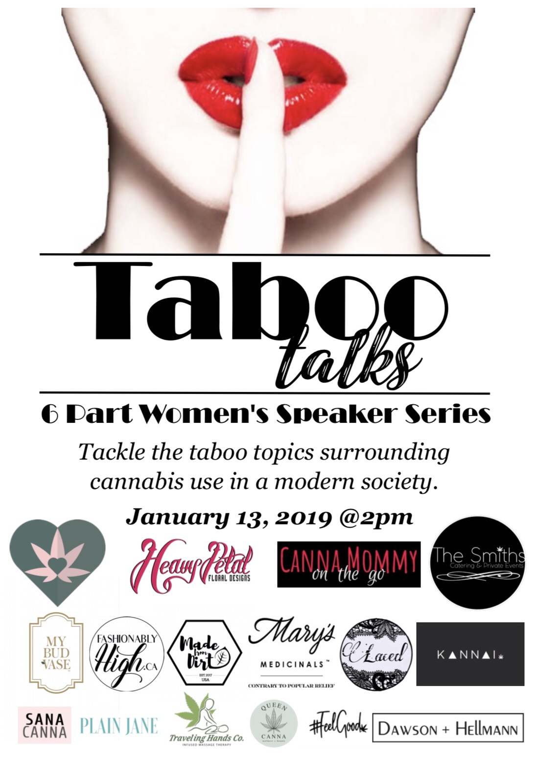 With this growing cannabis industry and legalization becoming the norm, many questions arise. Some of these topics are not easy to talk about, so we have created Taboo Talks. This brain Child of The Mommy Jane andThe Baked Unicorn Queen is going to break the barriers of what women talk about. This series will tackle tough topics like Cannabis and pregnancy, Cannabis and White Privilege and so many more. Our first event is January 13 at 2 pm